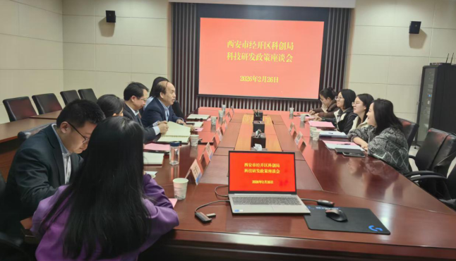 2月26日下午,西安市经开区科创局一行走进陕西省煤田地质集团有限公司,召开企业发展及研发申报政策沟通会,精准对接科技创新政策服务,助力企业科技创新高质量发展。双方围绕研发投入奖补、项目申报、科技型企业申报等话题进行了面对面交流。集团首席专家、副总工程师、重点实验室主任张育平主持会议,集团科技信息部、财务部负责人和重点实验室技术人员参加座谈。